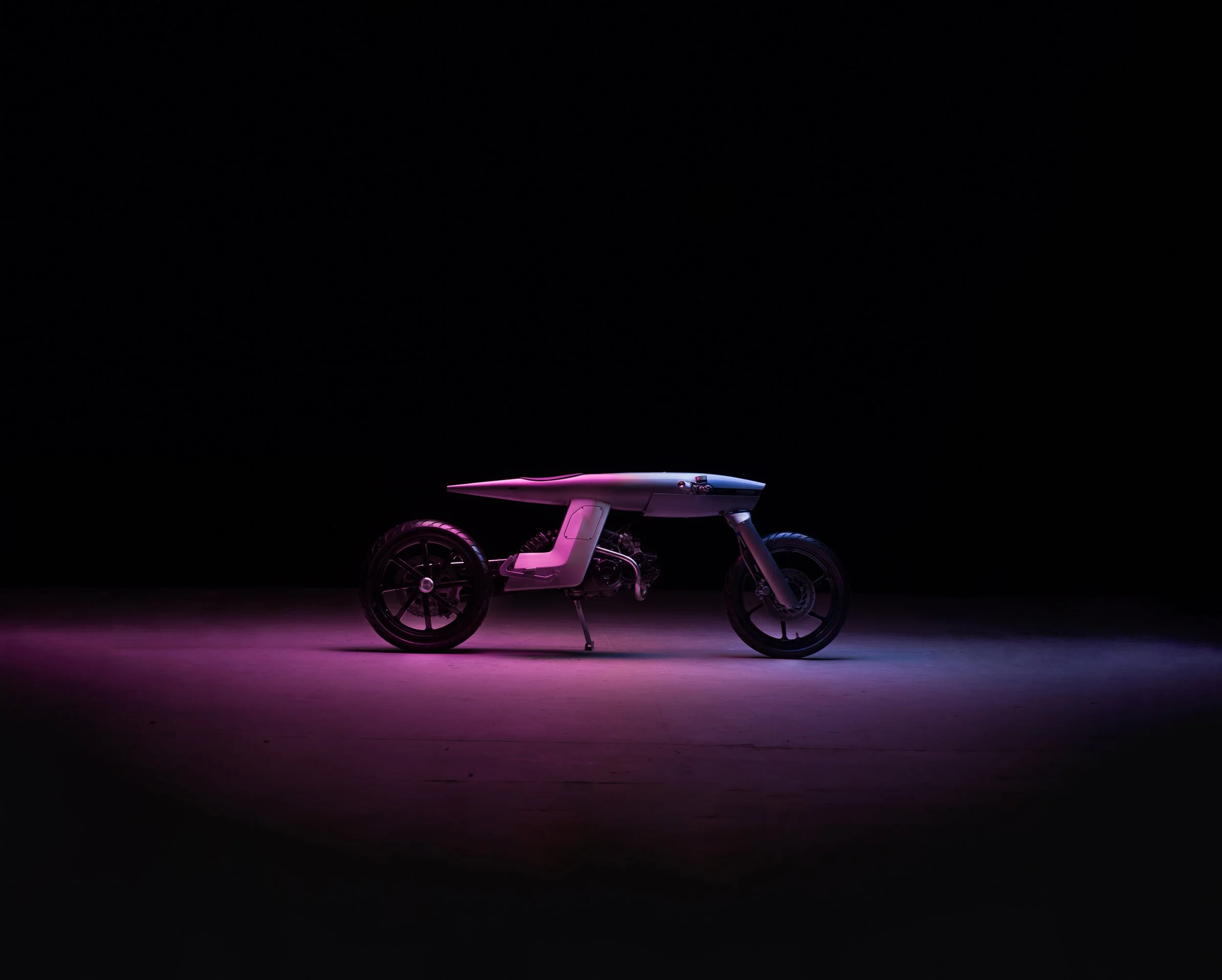 The EVE Odyssey is our most iconic work—shaped in brushed steel and inspired by Brancusi’s Bird in Flight. Built on a humble 125cc Honda Supersport, this hand-formed machine reimagined what a motorcycle could be: not just transport, but a timeless sculpture.